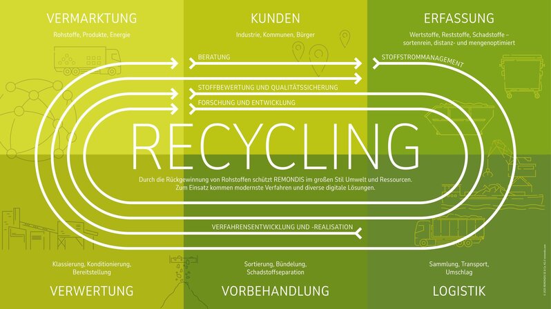Im Lippewerk dreht sich das meiste um Recyclingaktivitäten. Darüber hinaus hat REMONDIS aber noch sehr viel mehr zu bieten. Unter anderem gehören umfassende Services für Industrie, Kommunen und Bürger sowie alles rund ums Thema Wassermanagement zum Dienstleistungsportfolio. Sie möchten hierzu mehr erfahren? Dann empfehlen wir Ihnen, sich durch die Infografiken zu unseren drei Geschäftsfeldern zu klicken. Hier finden Sie detaillierte Informationen zu allem, was wir für unsere Kunden und im Auftrag der Zukunft leisten.
